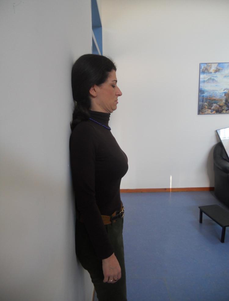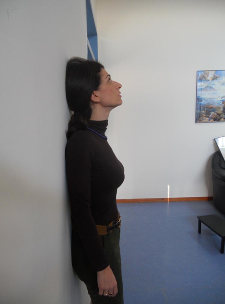 3. Estensione: sollevare il mento finché la zona occipitale non tocca il muro.