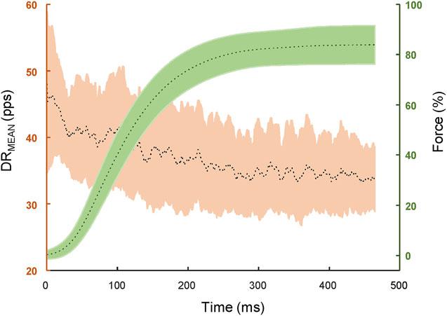 Siccome la fase iniziale di un compito feedforward riflette solo il drive efferente, l’attività di scarico delle unità motorie rappresenta una trasformazione dell’input corticale da parte dei motoneuroni. La maggior parte dei motoneuroni inizia a scaricare prima dell’aumento in della forza (Figure 1 e 2).