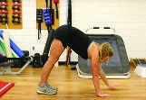 • Piegati in avanti e allontanare le mani dai piedi, mantenendo i talloni a contatto con il suolo
