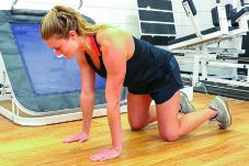 • Posizionare le mani direttamente sotto le spalle e le ginocchia alla larghezza dell’anca per creare 4 punti di contatto con il pavimento
