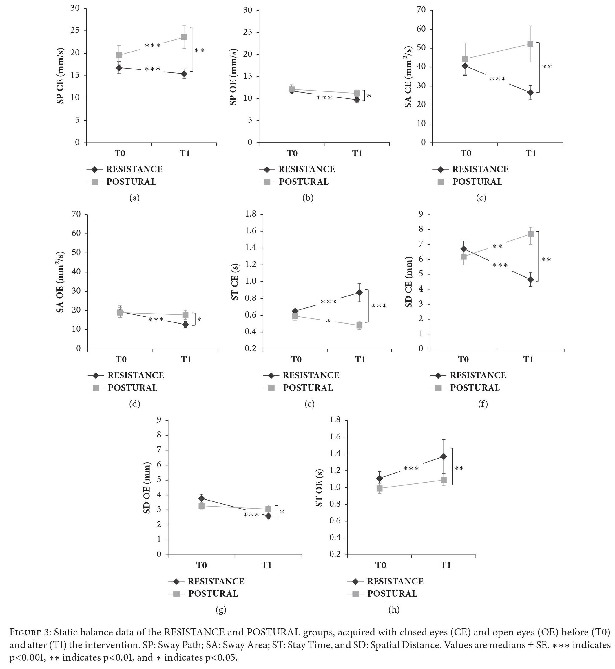 I miglioramenti nella massa muscolare e forza muscolare, sono clinicamente rilevanti perché i partecipanti si sono spostati da una condizione di moderata sarcopenia, a una condizione di normalità, dopo l’intervento di rinforzo muscolare, secondo i criteri utilizzati per diagnosticare la sarcopenia. In questo studio sono stati analizzati gli effetti di un protocollo di rinforzo muscolare nel migliorare i parametri di equilibrio, come Sway Path, Sway Area, Stay Time e Spatial Distance, confrontandoli con dati ottenuti in un altro gruppo di donne anziane con sarcopenia moderata sottoposte a Programma APA incentrato su un allenamento posturale. I risultati hanno mostrato che il programma di rinforzo muscolare, era più vantaggioso dell’intervento posturale, nel migliorare i parametri di equilibrio. Quindi si suggerisce che il miglioramento dei parametri per l’equilibrio statico, può essere ottenuto in modo più efficace con un aumento della forza, che da un allenamento posturale.